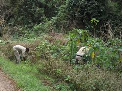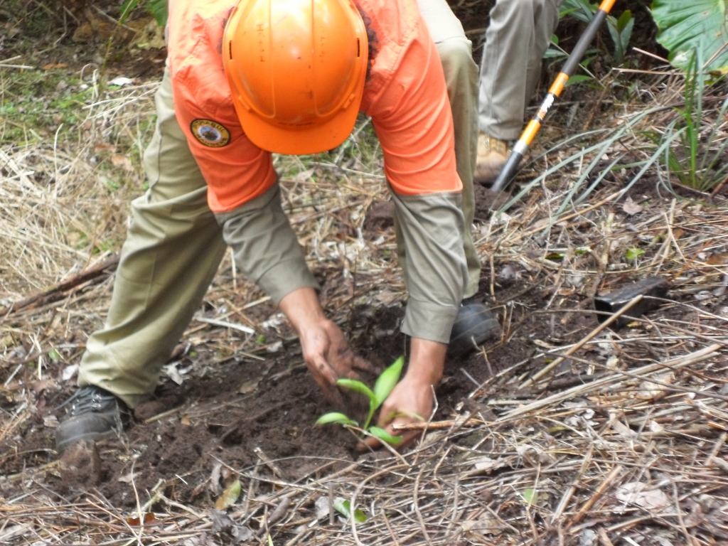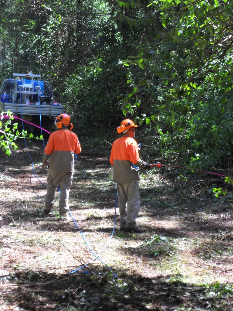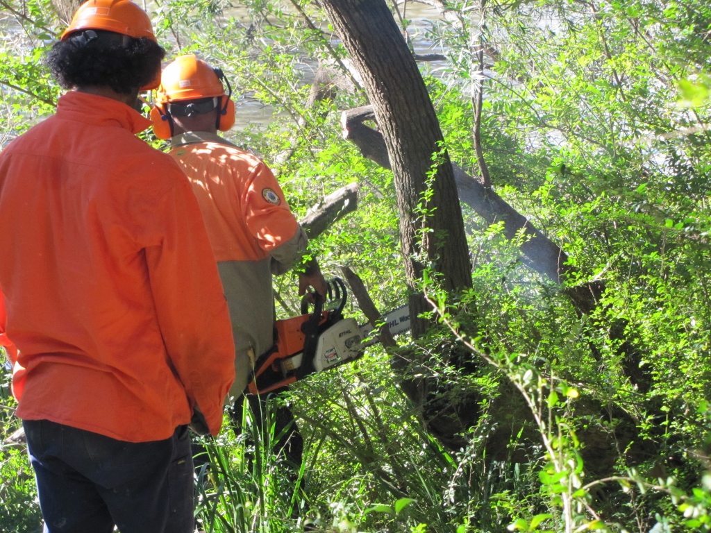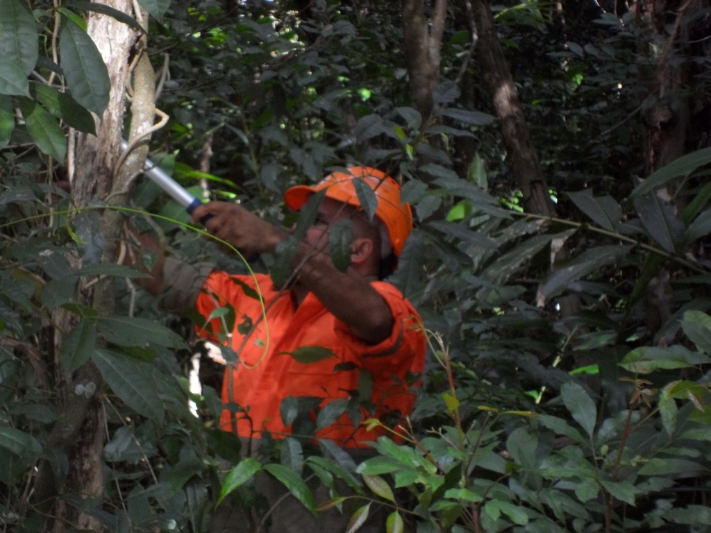 On ground work involves a range of weed management techniques including spraying, hand pulling, traditional fire management, propagation and planting of native species.